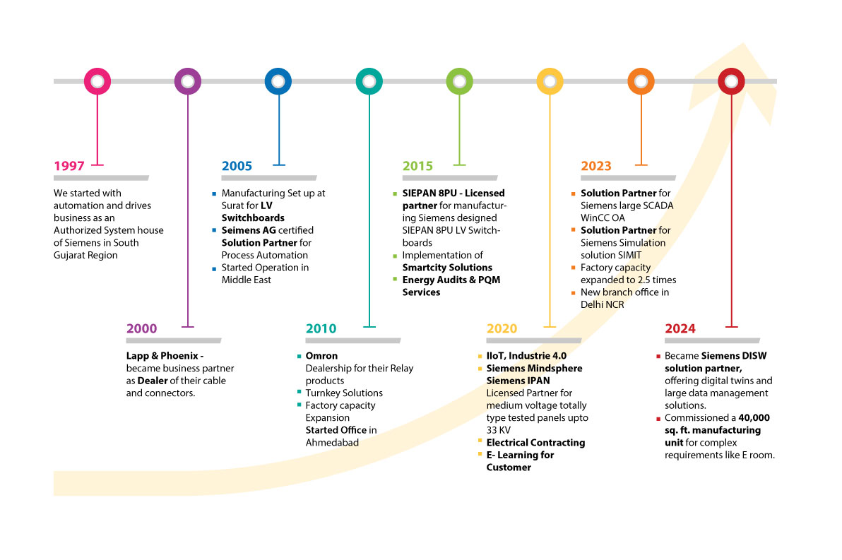 Velox Automation Pvt. Ltd., founded in 1997 is one of the leading companies with diversified offerings in the field of Industrial Automation, Digitalization and software solutions, IOT Solutions, Electrical Switch Boards, Turnkey Projects, Trading of Industrial Components & Smart City Solutions.